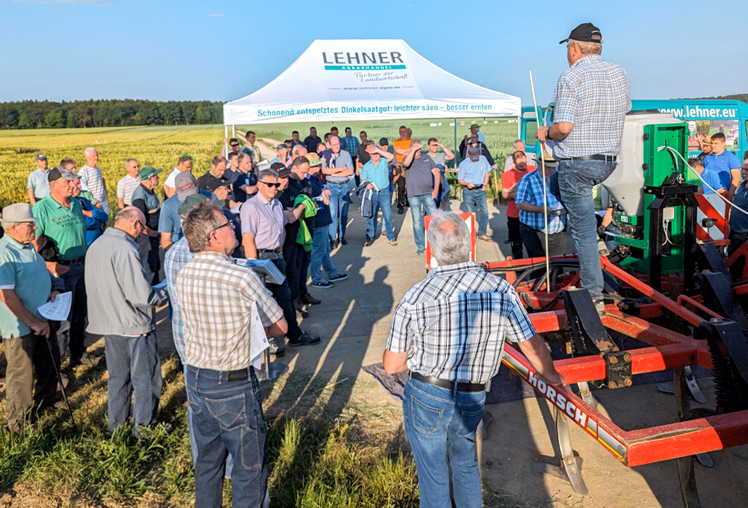Eine wirkliche Rarität ist unser Dinkel-Wachstumsreglerversuch. Es wurden durch Helmut Lehner sehr anschaulich die Unterschiede in den verschiedenen Behandlungstermin, Spritzfolgen und Mitteln erläutert. Diese Ergebnisse sind auch auf andere Kulturen übertragbar – im Dinkel sieht man die Effekte jedoch aufgrund seiner Wüchsigkeit am Schönsten.